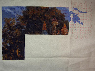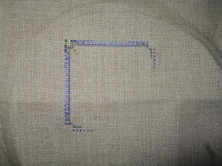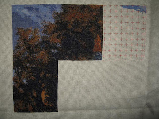 Also, I got some questions about what I use to grid. I use Easy Count Guideline (available at 123stitch.com) and I really like it. It's kind of like fishing line except really easy to see (as you can see above) and it pulls right out without leaving marks.