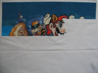 I've mentioned before that I'm turning into a one-at-a-timer. I'm focusing on finishing my oldest WIP first and moving to the newest. The only hitch in this plan is that I have to work on another piece while working on College (and Medieval Shelf/Treasure Quest) at least while I live with my parents. So, Mario is my oldest WIP and thus I'm focusing on finishing that one first. I will actually have a page finish on that one for you guys in a few days, when I get home!