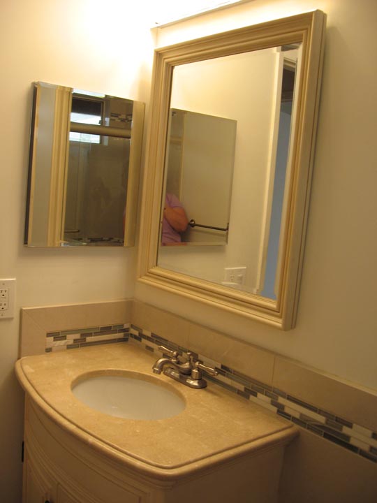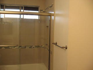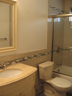 I think it looks pretty nice! We went with a beige tile on the wall and a gray tile on the floor (which you can sort of see in the last picture - it's also the same tile we used for the baseboard). Anyway, mission accomplished. Too bad I'm not there to see it.