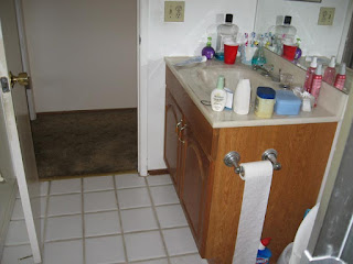 I've got two pieces of news. The first is that the bathroom is finished! I'll show you guys the before and afters. I'm pretty proud of myself since I designed most of it, and I think it looks good!