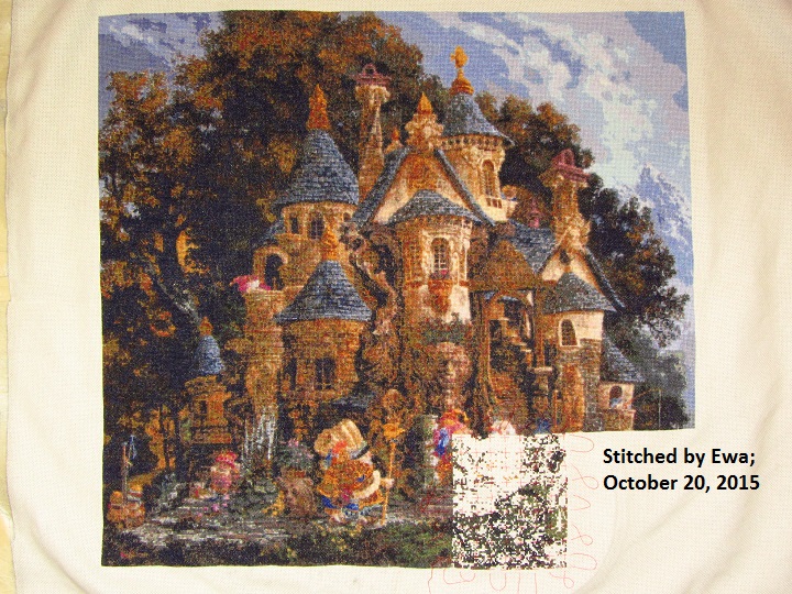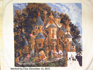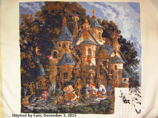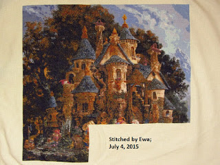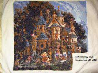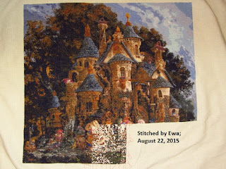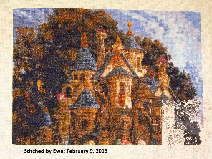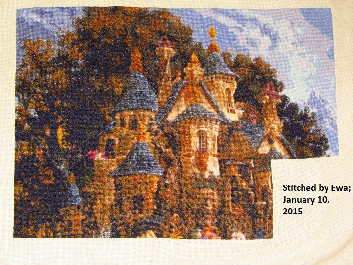 But College of Magical Knowledge has not been neglected either! I'm disappointed by how little it looks like I stitched on it, but I put in over 2,500 stitches since I last posted it.
