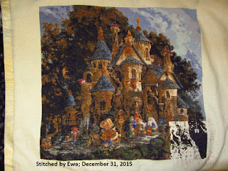 I didn't finish by Christmas and I didn't finish by the end of the year. But I've stopped stressing out avout it and am going to finish, wash it, get it framed, and still give it as a gift to my parents without the added stress.