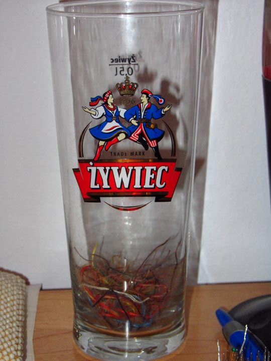 In other news, a few weeks ago I got an e-mail from Jo of Serendipitous Stitching asking me if she could send Handsome Helpful Boyfriend a present. I had no objections and about two weeks later got a neat little packet in the mail. We opened it up and imagine our surprise at the loveliness enclosed! Picture below, along with my last TUSAL jar of the year.